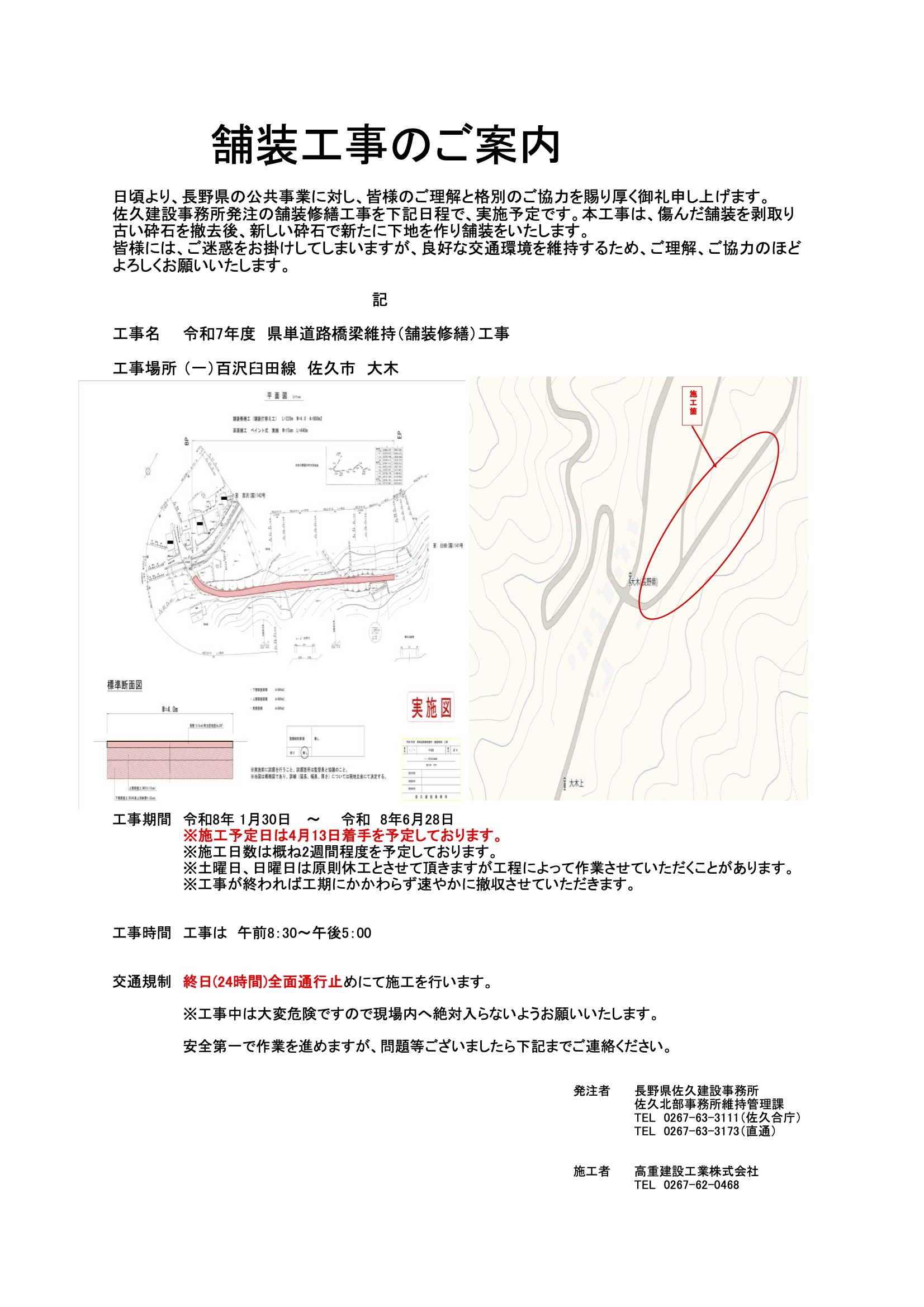 通行予定の皆様には大変ご迷惑をおかけしますが、期間中は周辺道路へ迂回していただきますようお願い申し上げます。